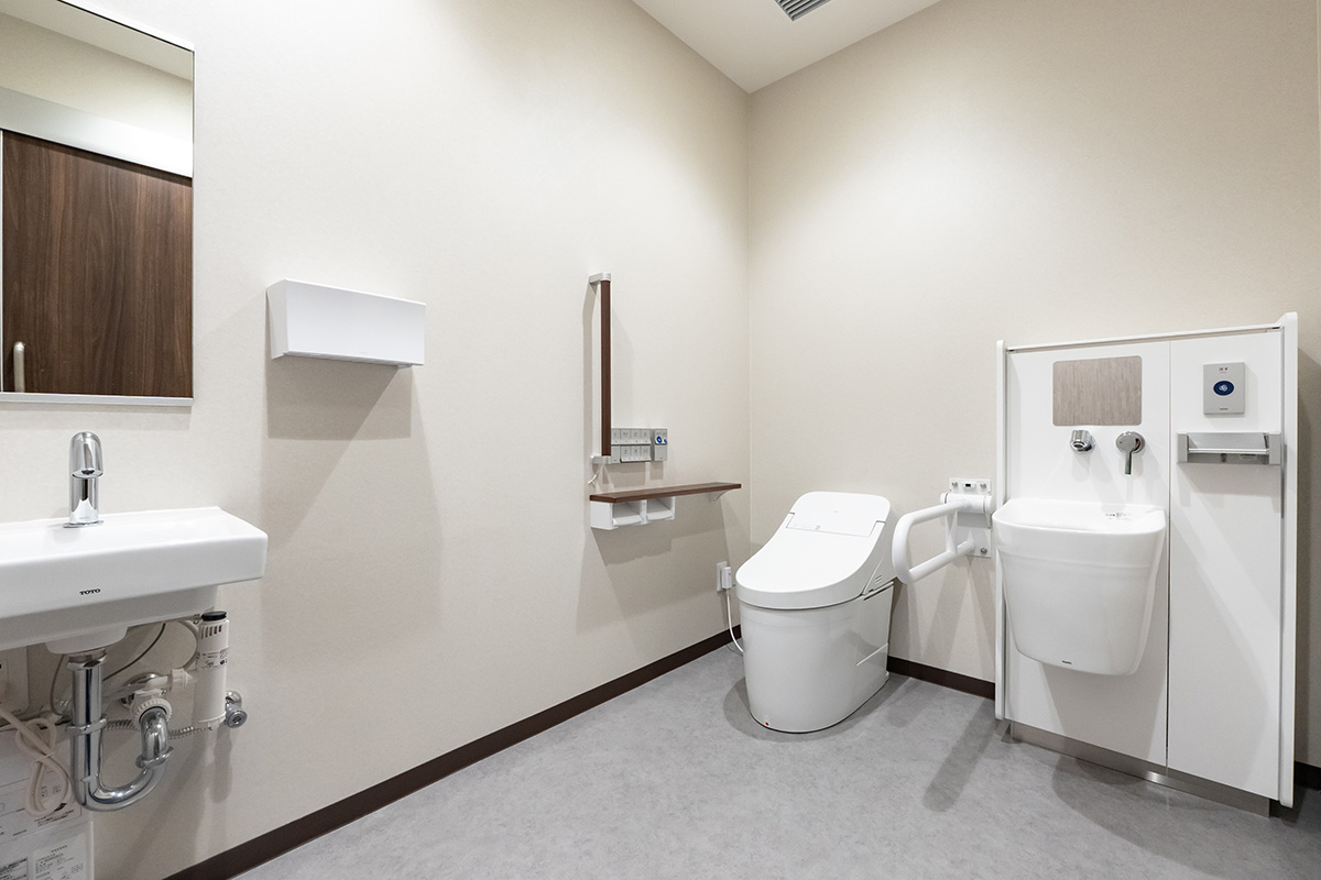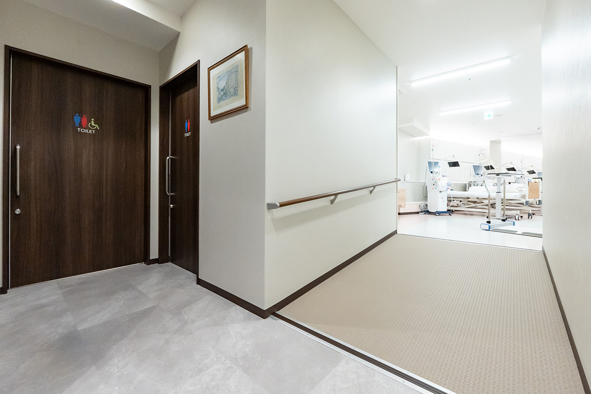 大きな自動ドアで車椅子でも入りやすくなっています。