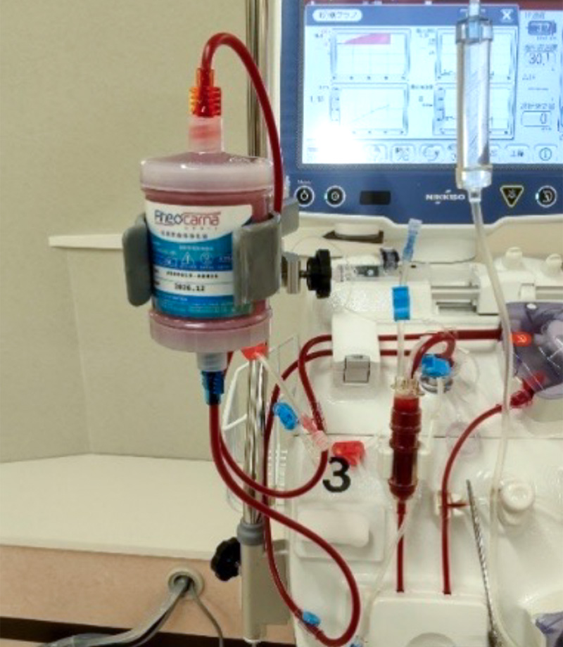 元町HDクリニックでは、患者様の状態に応じてOn-line HDF、β2-ミクログロブリン吸着器(リクセル®)の併用療法や吸着型血液浄化器(レオカーナ®)などを用いて幅広い血液浄化法を施行しています。