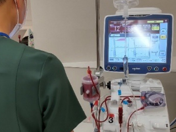 透析装置の監視だけでなく、患者様のバイタルサインを見逃すことがないよう、チェックし、医師・看護部と連携をしています。